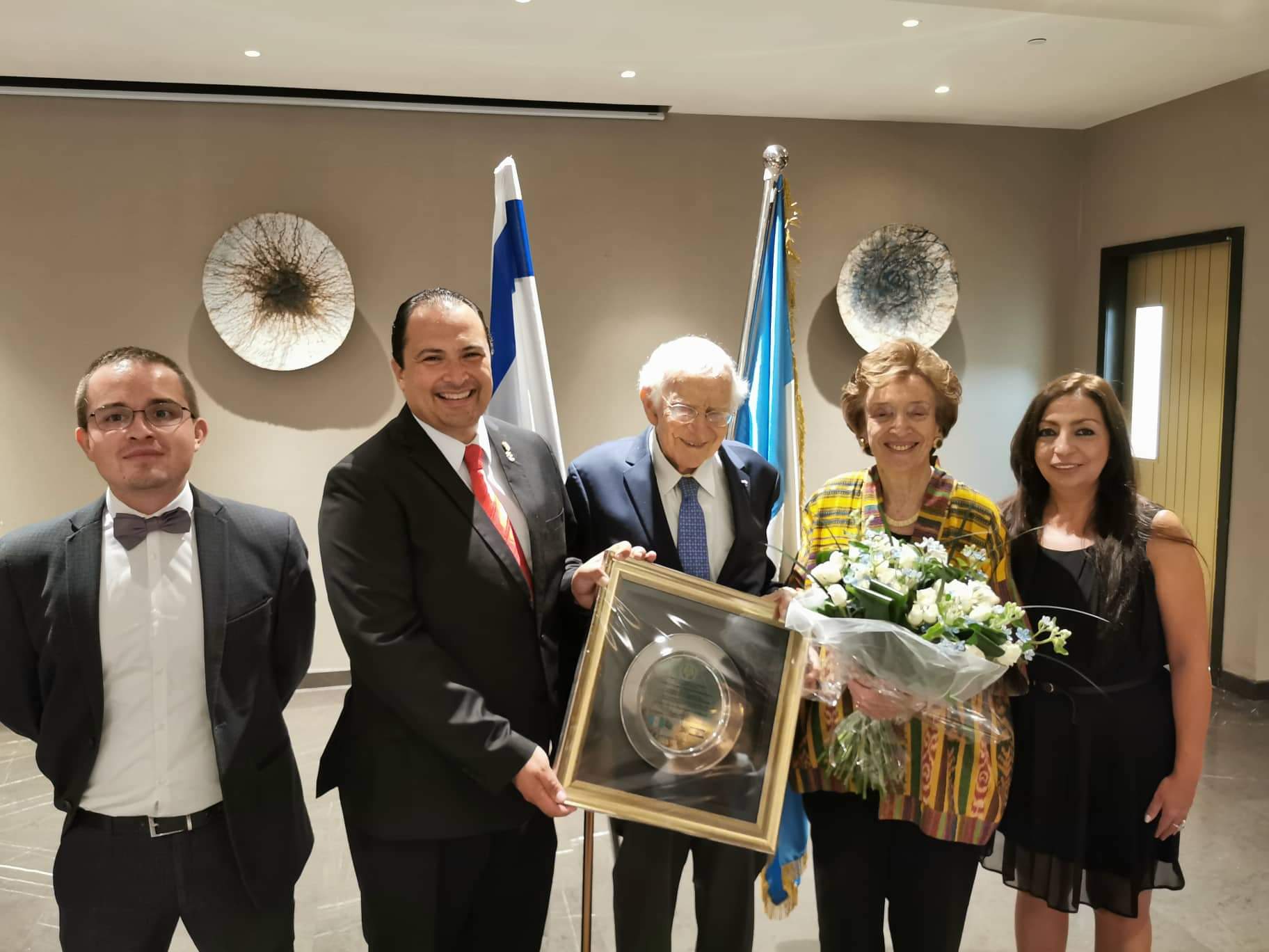 In response, Mr. and Mrs. Loval’s son read out their acceptance speech. Speaking on behalf of his father, he noted Guatemala’s strategic support for Israel way back in 1947 when the UN voted to partition British-Mandate Palestine into Arab and Jewish states; then in 1949 when Guatemala headed a small group of countries to invite Israel to become a United Nations member – the 50th UN member! And again in 1955, when Guatemala opened its embassy in Jerusalem – the 1st country to do so.