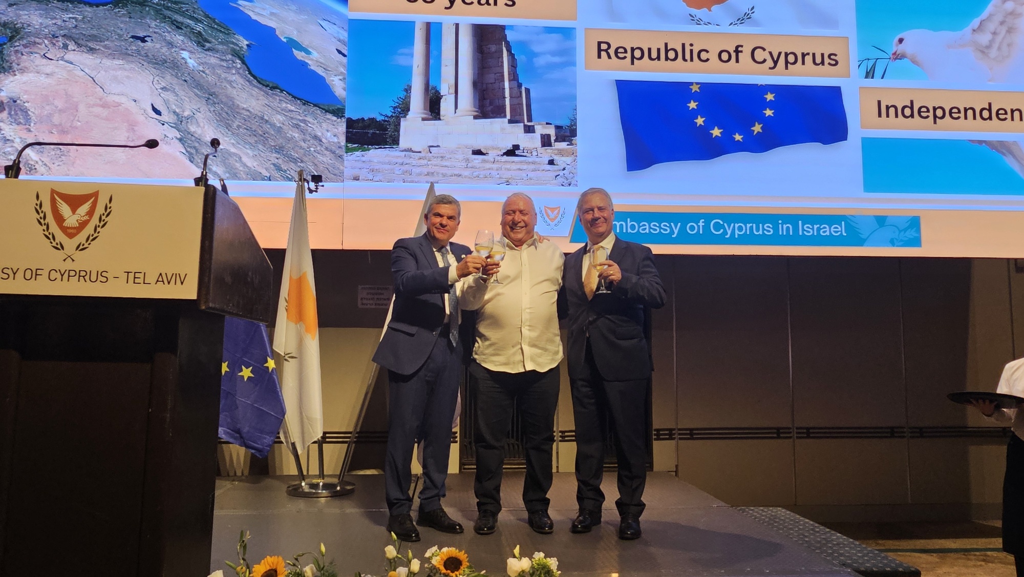 Drawing from our lessons in history, we need to stand firm against any forms of Anti Semitsim that represent a threat to our societies and to democracy. Cyprus - Israel relations have intensified and flourished and today our bilateral relations include emergency response, energy, defence, healthcare, trade, investments, technology, innovation and tourism. A weekly 186 flights per week at the peak of the summer season including a "Haifa route" is yet another testament to the close ties between our peoples. In Cyprus there is a large and growing Israeli community enriching our society. In the wake of the 7th of October 2023, our partnership with Israel has become more important for regional stability and security. From the tragic outset following that horrendous day, Cyprus extends its solidarity to Israel, condemning Hamas, supporting the unconditional release of all hostages and recognizing Israel's right to self defence in line with international law. Through the creation of a maritime corridor for the transfer of humanitarian aid to Gaza, Cyprus has addressed and contributed to efforts in alleviating the dire situation for civilians in Gaza. Cyprus also served as a hub for the return of Israelis citizens and also for the evacuation of foreign citizens. The Ambassador concluded his address by extending his appreciation and thanks to Cyprus's Honorary Consul in Israel, Mr. Leon Koffer and to all sponsors of the evening's event.