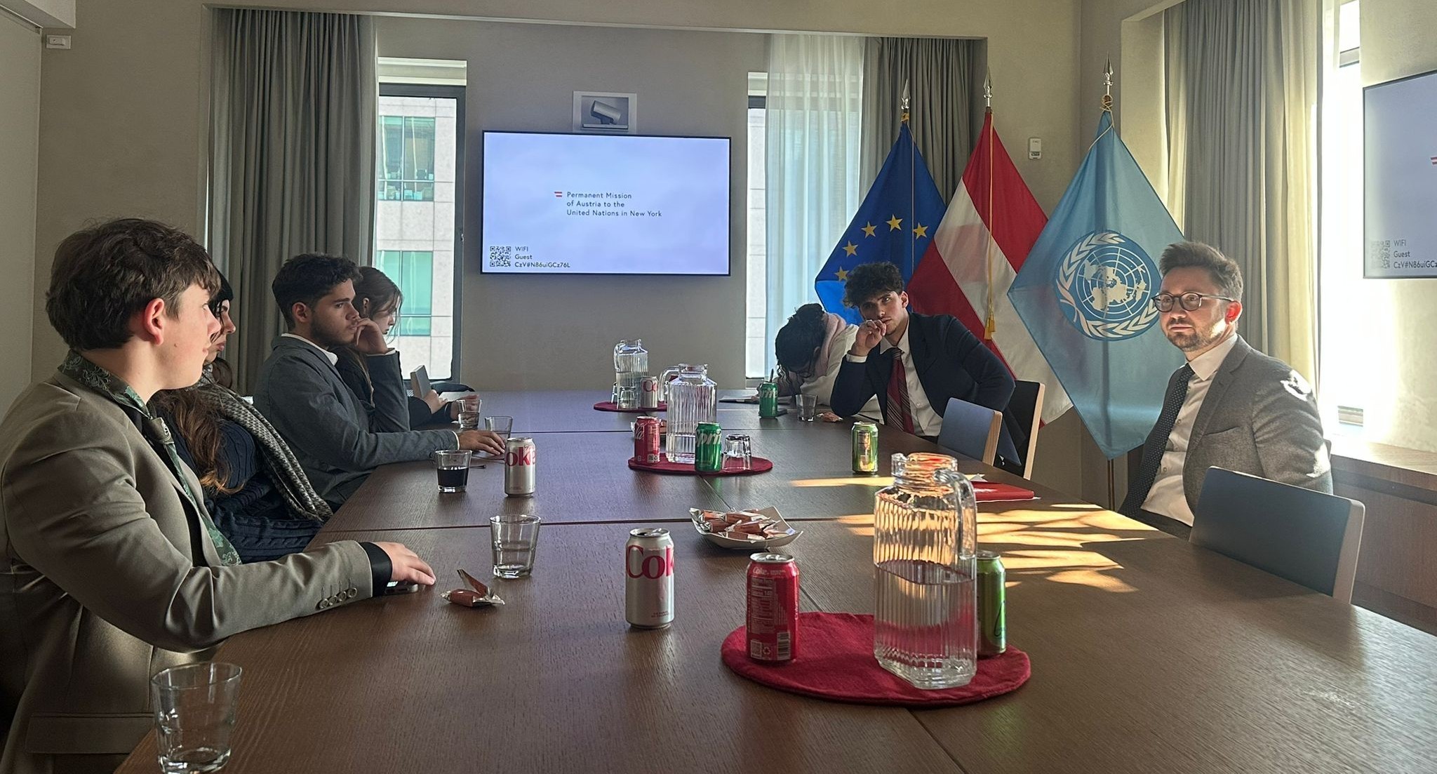 The experience began with three days of visits to missions to the United Nations, where students met with diplomats from the Permanent Missions of Costa Rica, Austria, and the United States. These briefings gave delegates firsthand insight into how global representatives negotiate, advocate, and collaborate on critical international issues. Additionally, the group talked with Professor Mehnaz Afridi, Director of the Holocaust, Genocide, and Interfaith Education Center at Manhattan College.